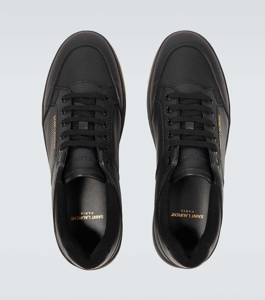 Sole: leather insole, rubber sole. Toe shape: round toe. Comes with extra laces. Comes with a box. Closure: lace-up. Designer color name: Nero/Nero. Lining: fabric. Made in Italy. Comes with dust bags. Upper: leather. Shop Saint Laurent Low-Top Sneakers for men and other designer shoes now.