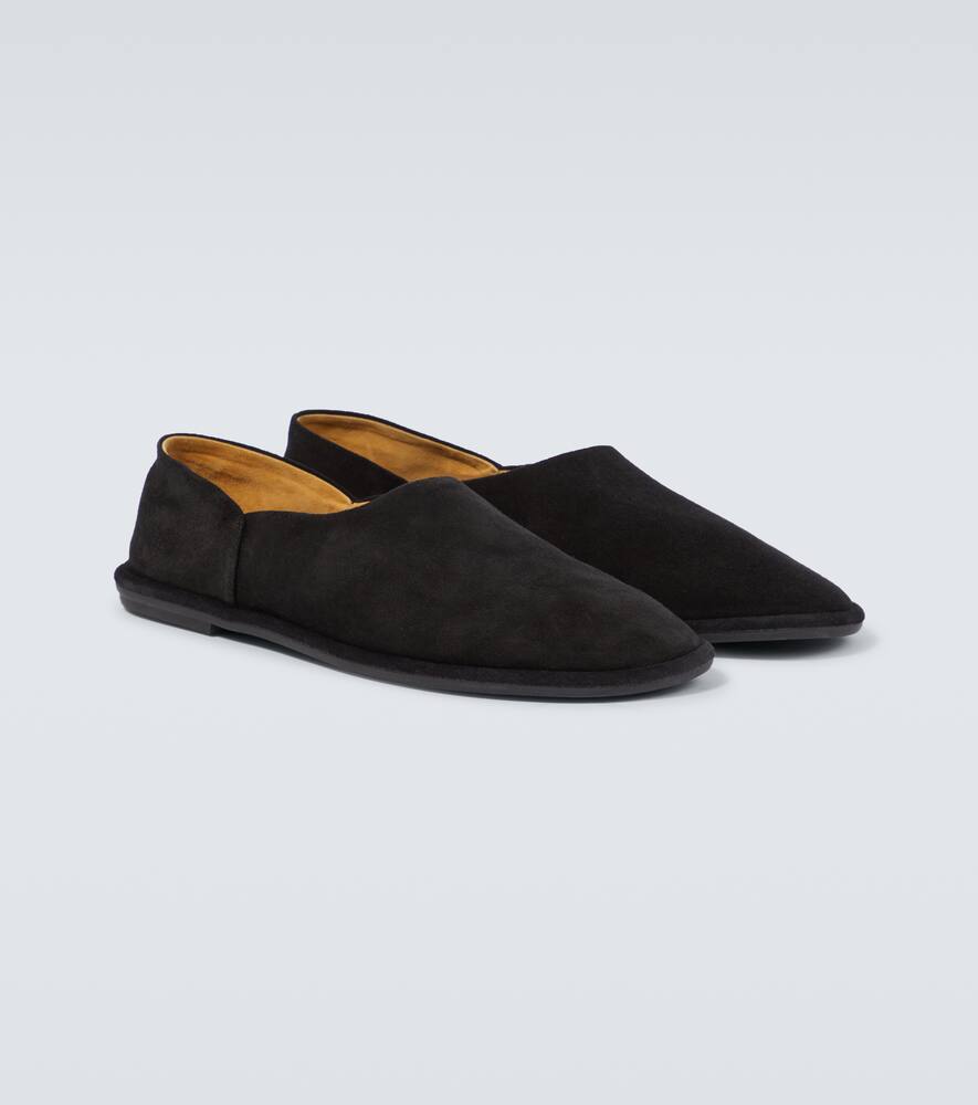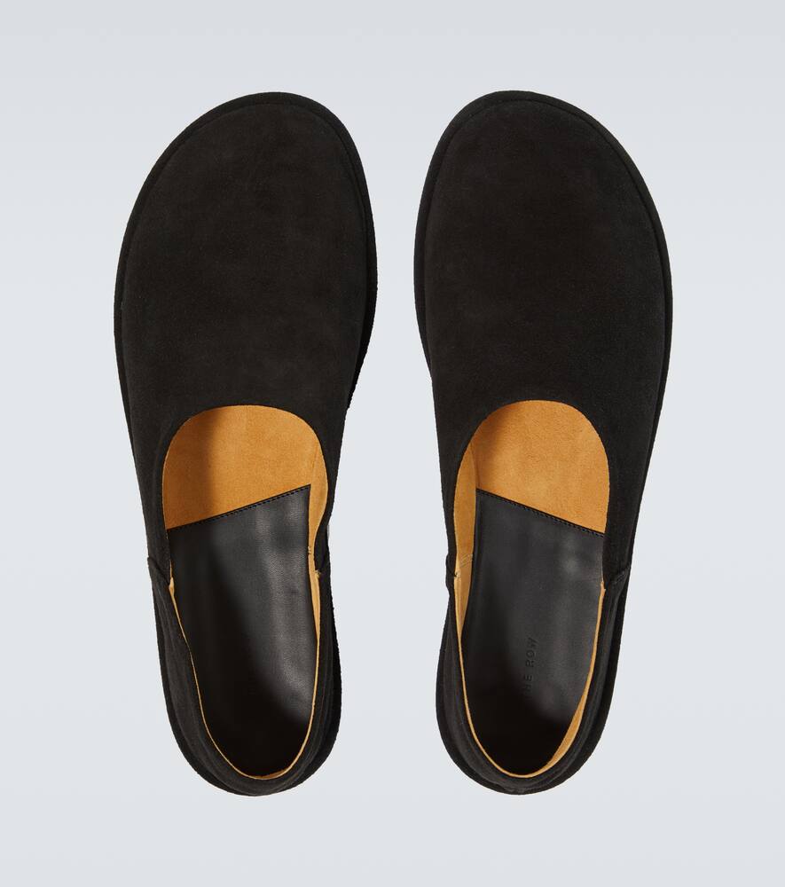 Upper: suede. Lining: leather. Sole: leather insole, rubber sole. Toe shape: round toe. Made in Italy. Includes: shoe box, dust bag. Designer color name: Black. Shop The Row Loafers for men and other designer shoes now.