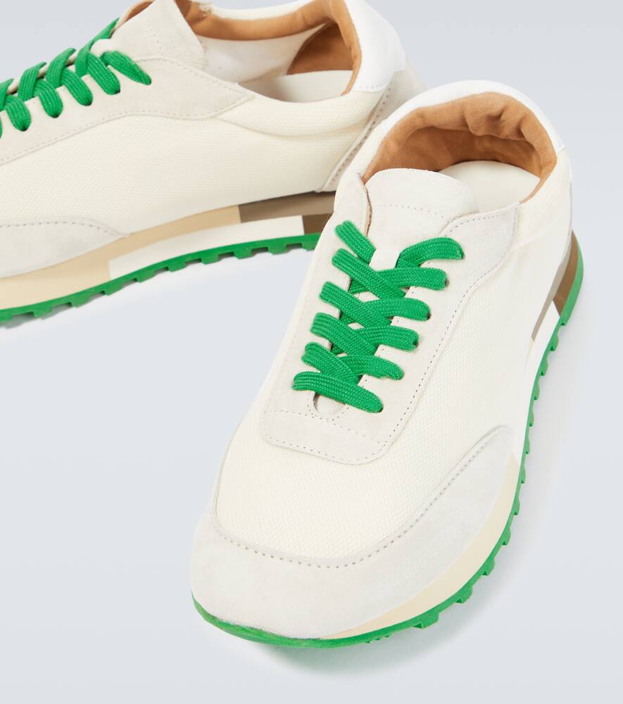 Lining: leather, fabric. Upper: fabric, leather. Sole: leather insole, rubber sole. Toe shape: almond toe. Made in Italy. Designer color name: Ivory/Green. Shop The Row Designer Sneakers for men and other designer shoes now.