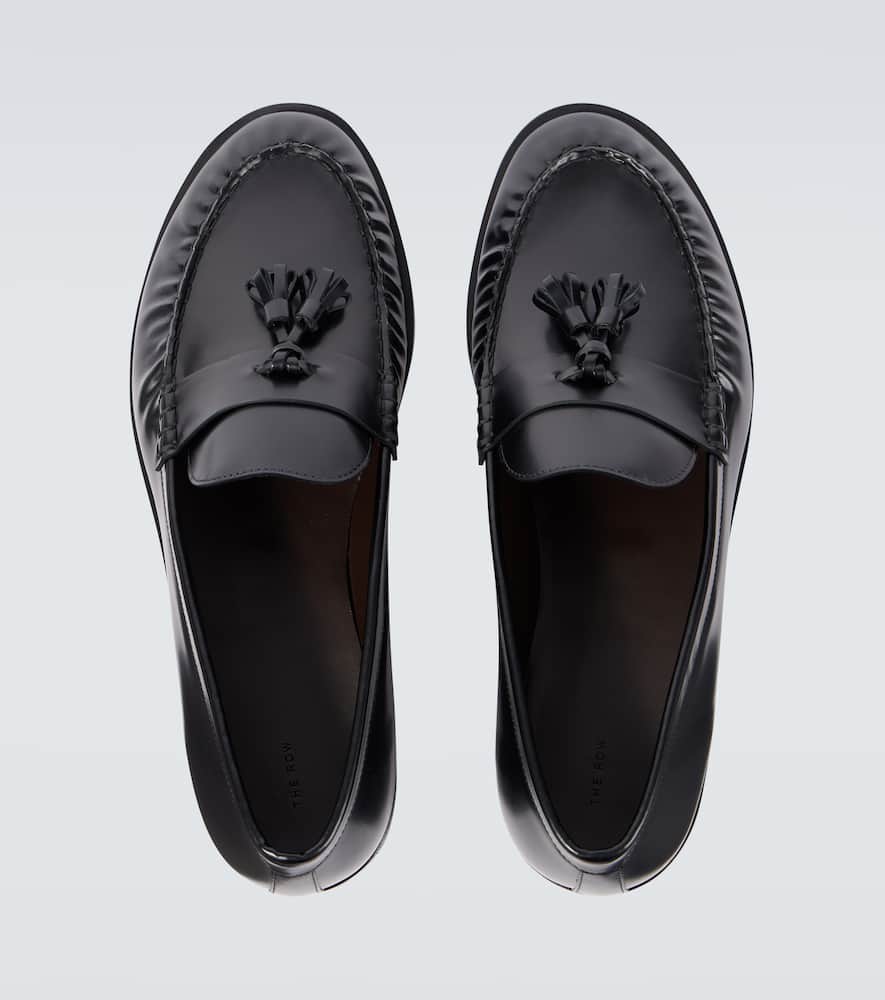 Upper: leather. Lining: leather. Sole: leather insole and sole. Toe shape: almond toe. Made in Italy. Includes: shoe box. Designer color name: Black. Shop The Row Loafers for men and other designer shoes now.