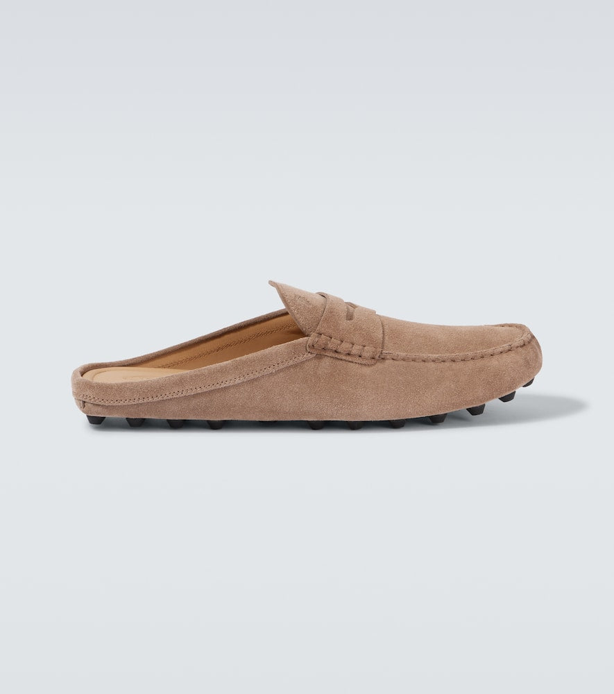 Upper: leather. Lining: leather. Sole: leather insole, signature pebbled rubber sole. Toe shape: almond toe. Made in Italy. Includes: shoe box, dust bag. Designer color name: Creta Chiaro + Gommini Neri. Shop Tod's Slippers for men and other designer shoes now.