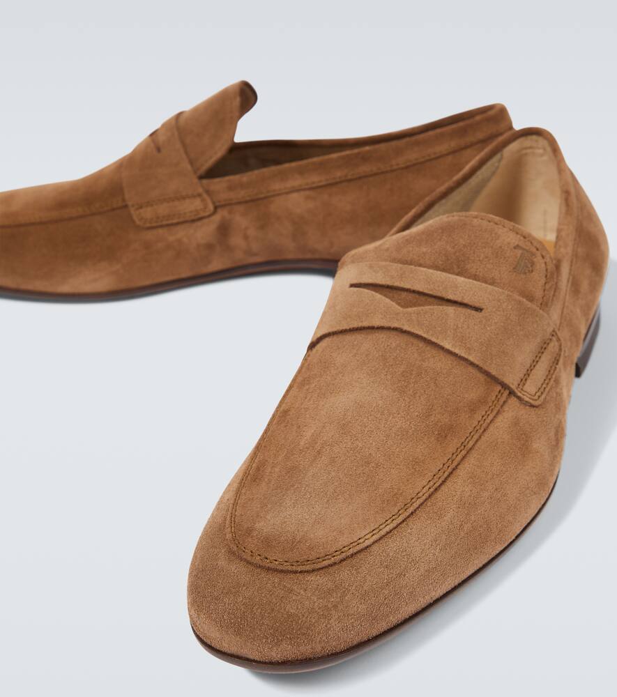 Upper: suede. Lining: fabric. Sole: leather insole and sole. Toe shape: almond toe. Made in Italy. Includes: shoe box, dust bag. Designer color name: Noce Chiaro. Shop Tod's Loafers for men and other designer shoes now.