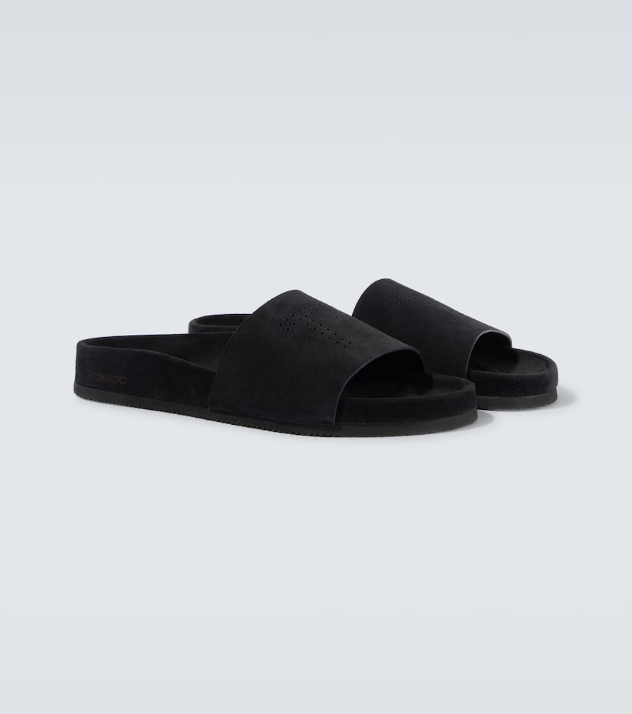 Upper: leather. Lining: leather. Sole: leather insole, rubber sole. Toe shape: round open toe. Made in Italy. Includes: shoe box, dust bag. Designer color name: Black. Shop Tom Ford Sandals & Slides for men and other designer shoes now.
