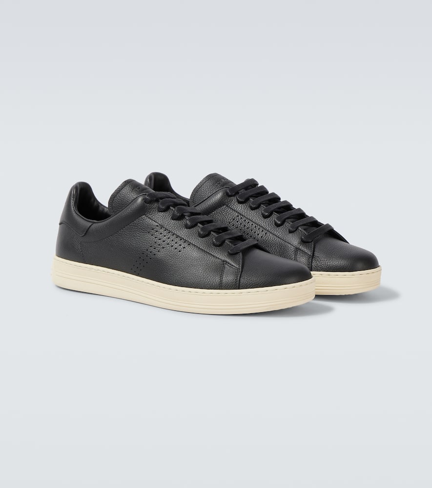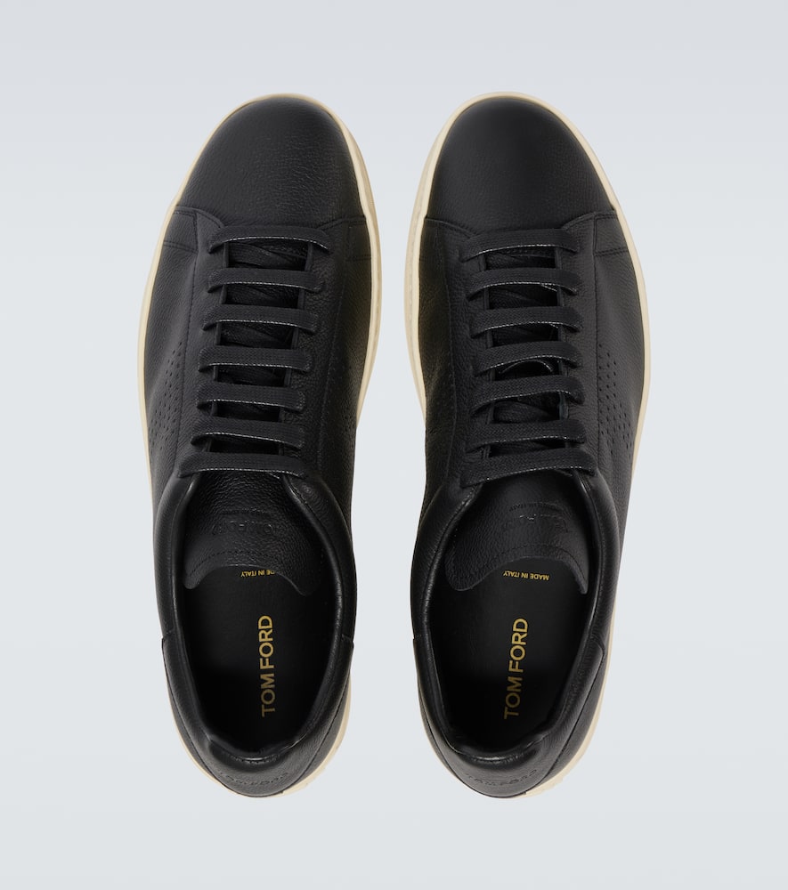 Upper: leather. Lining: leather. Sole: leather insole, rubber sole. Toe shape: almond toe. Made in Italy. Includes: shoe box, dust bags. Designer color name: Black + Cream. Closure: lace-up. Shop Tom Ford Designer Sneakers for men and other designer shoes now.