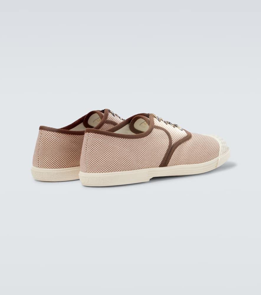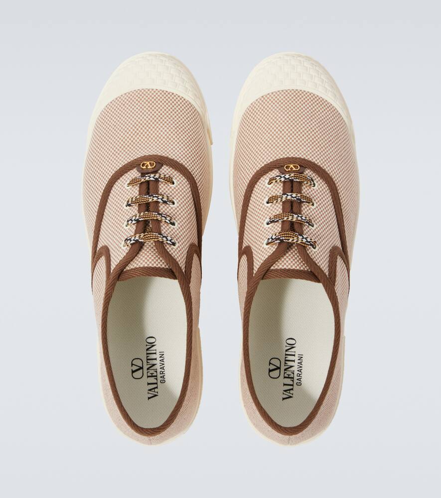 Upper: fabric. Lining: fabric. Sole: fabric insole, rubber sole. Toe shape: round toe. Made in Italy. Includes: shoe box, dust bags. Designer color name: Bicolor-Tobacco. Closure: lace-up. Hardware color: gold. Shop Valentino Garavani Designer Sneakers for men and other designer shoes now.