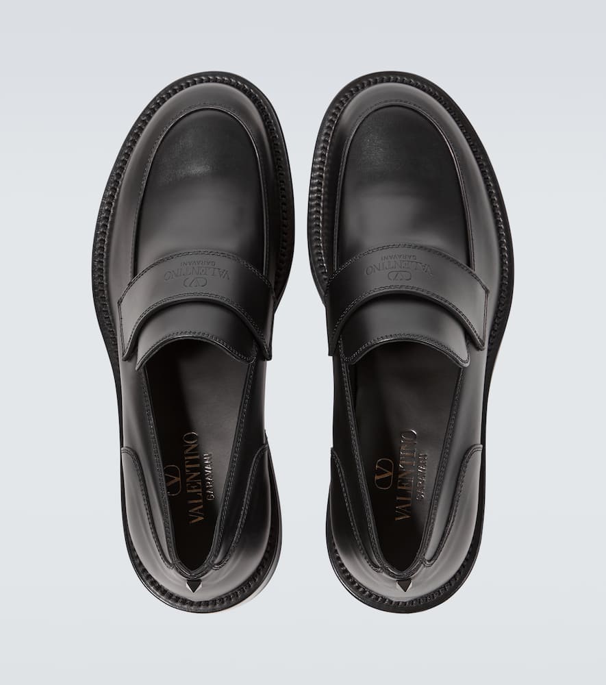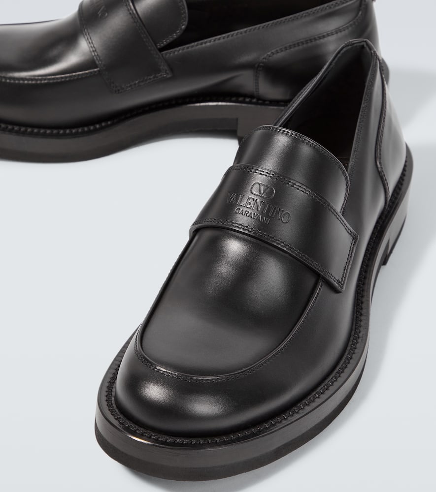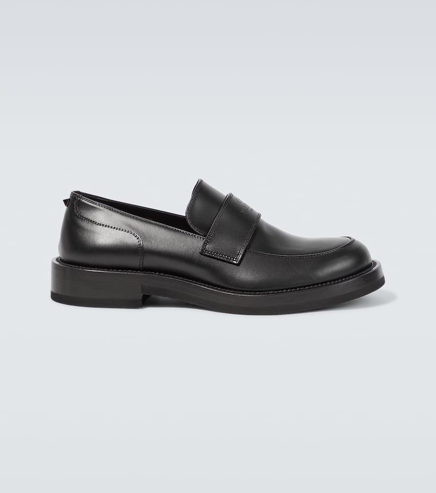 Upper: leather. Lining: leather. Sole: leather insole, leather and rubber sole. Toe shape: round toe. Made in Italy. Designer color name: Nero. Comes with a box. Comes with dust bags. Shop Valentino Garavani Loafers for men and other designer shoes now.