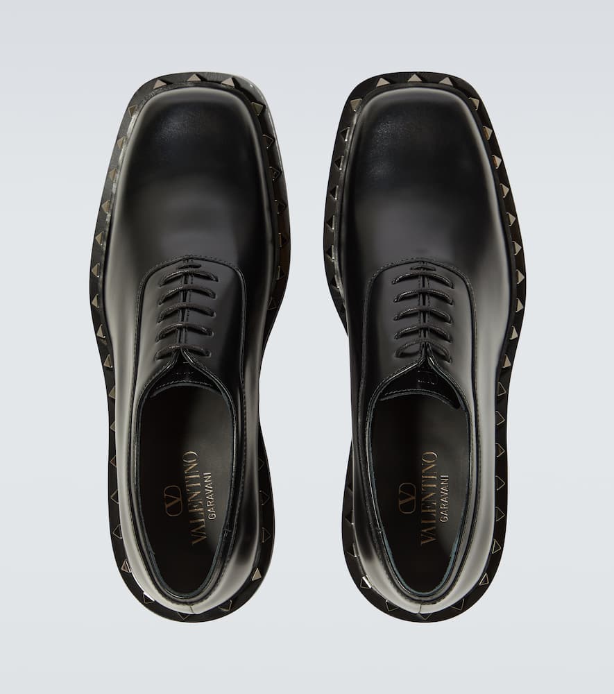 Upper: leather. Lining: leather. Sole: leather insole, leather and rubber sole. Toe shape: square toe. Made in Italy. Designer color name: Nero. Comes with dust bag. Comes with a box. Shop Valentino Garavani Derby for men and other designer shoes now.
