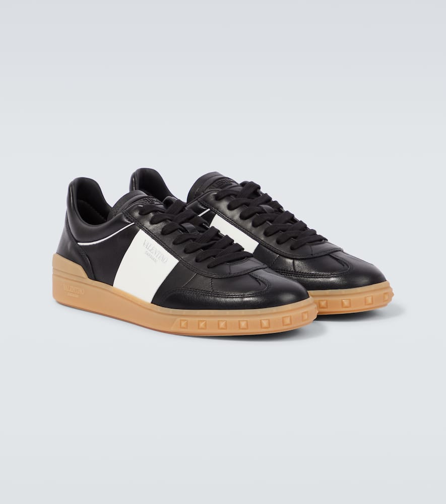 Upper: leather. Lining: leather. Sole: leather insole, rubber sole. Toe shape: round toe. Made in Italy. Includes: shoe box, dust bags, extra laces. Designer color name: Nero-Bianco-Nero-Bianco/Ambra. Closure: lace-up. Shop Valentino Garavani Designer Sneakers for men and other designer shoes now.