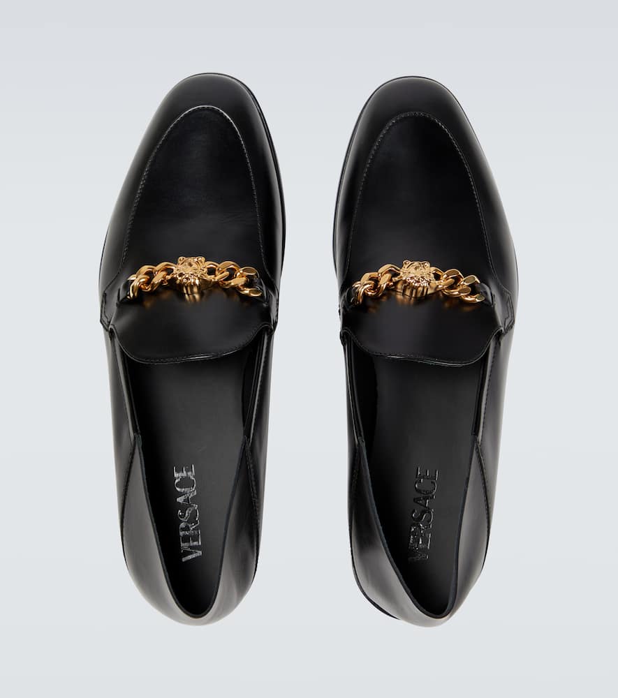 Lining: leather. Toe shape: round toe. Upper: calf leather. Sole: leather insole and sole. Comes with a box. Designer color name: Nero-Oro Versace. Made in Italy. Comes with dust bag. Shop Versace Loafers for men and other designer shoes now.