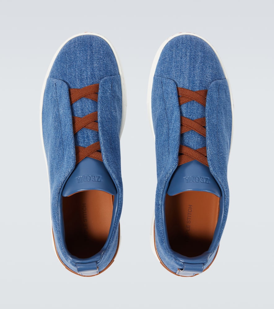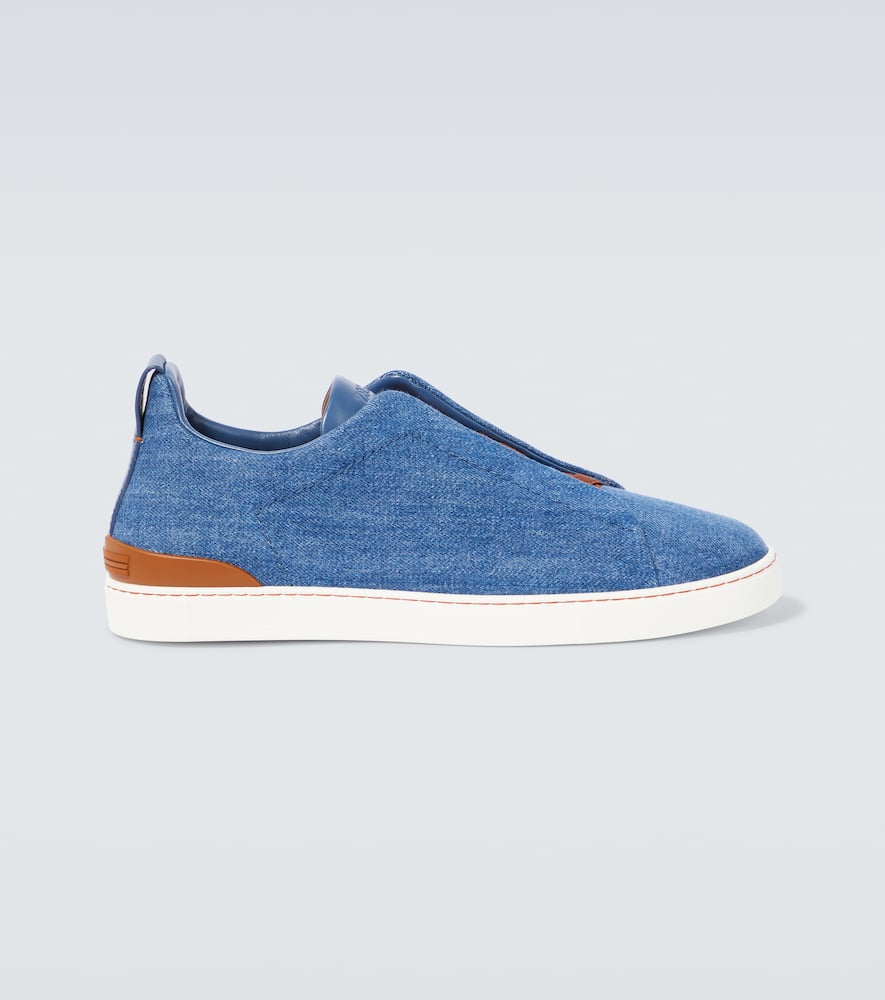 Upper: fabric. Lining: leather. Sole: leather insole, rubber sole. Toe shape: round toe. Made in Italy. Includes: dust bags, shoe box. Designer color name: Denim Blue. Trim: leather. Closure: lace-up. Shop Zegna Low-Top Sneakers for men and other designer shoes now.