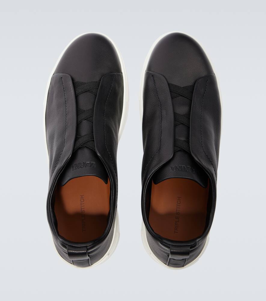 Upper: leather. Lining: leather. Sole: leather insole, rubber sole. Toe shape: round toe. Made in Italy. Includes: shoe box, dust bags. Designer color name: Black. Closure: elasticated strap. Shop Zegna Designer Sneakers for men and other designer shoes now.