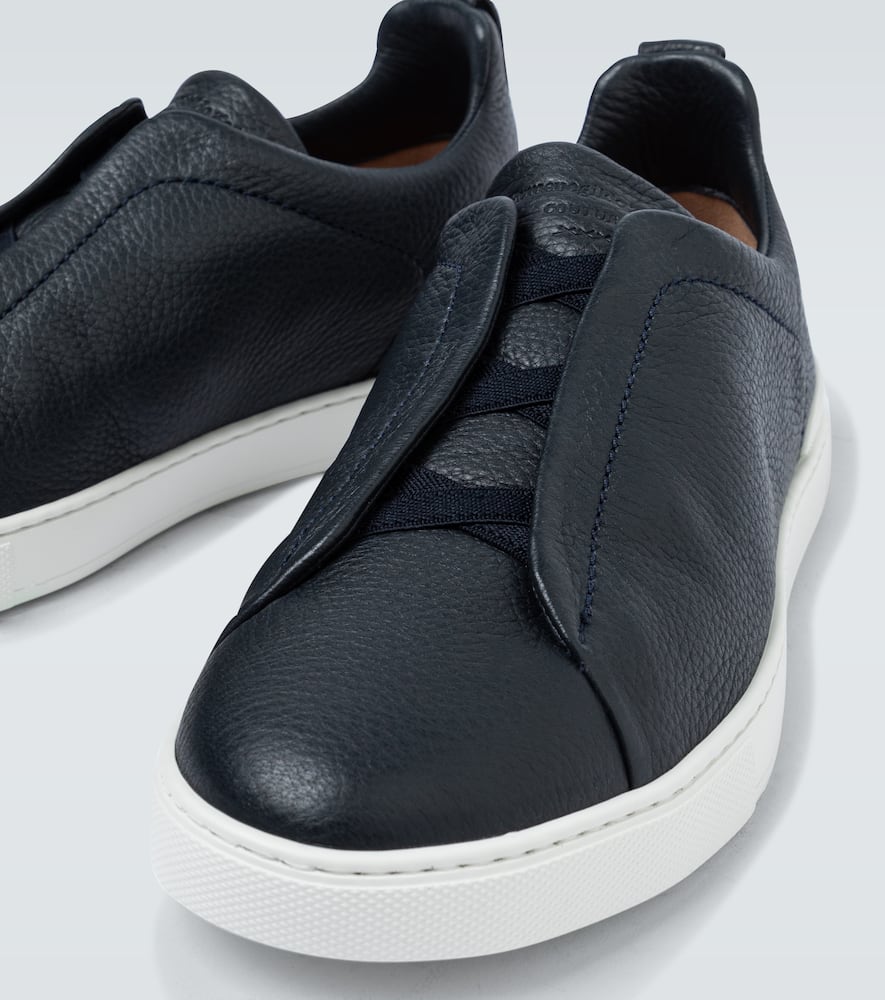 Upper: deer leather. Lining: leather. Sole: leather insole, rubber sole. Toe shape: round toe. Made in Italy. Includes: shoe box. Designer color name: Nav. Closure: lace-up. Shop Zegna Designer Sneakers for men and other designer shoes now.