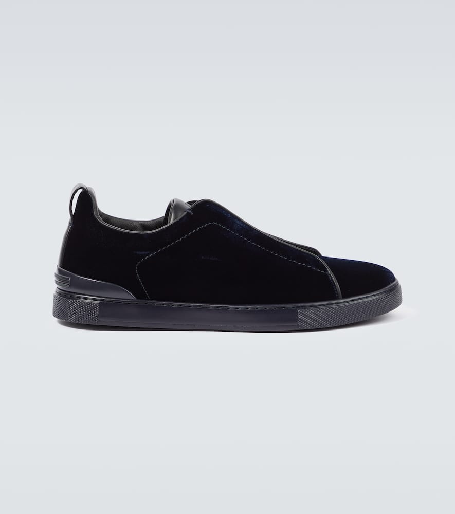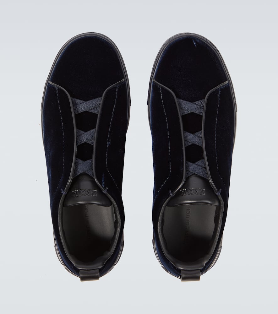 Upper: fabric. Lining: leather. Sole: leather insole, rubber sole. Toe shape: round toe. Made in Italy. Includes: shoe box, dust bags. Designer color name: Navy Blue. Trim: leather. Closure: lace-up. Shop Zegna Low-Top Sneakers for men and other designer shoes now.