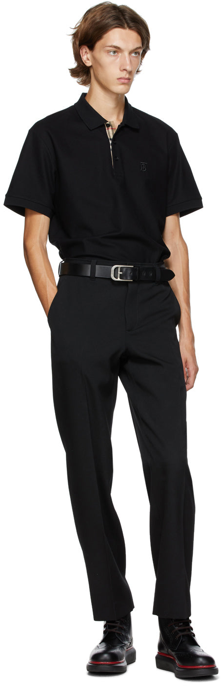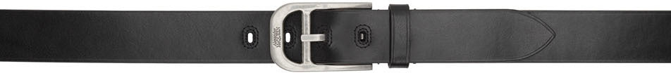 Buffed calfskin belt in black. Logo-engraved hardware at adjustable pin-buckle fastening. Tonal embroidered detailing at belt holes. Inner face in beige. Antiqued silver-tone hardware. Supplier color: Black Calfskin. Brand: Alexander McQueen