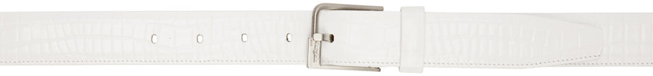 Croc-embossed leather belt in white. Logo engraved at pin-buckle fastening. Silver-tone hardware. Supplier color: White Leather. Brand: Maison Margiela