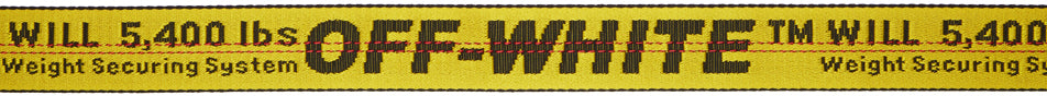 Nylon-blend webbing belt in yellow. Jacquard woven logo in black and topstitching in red throughout. Logo-engraved hardware at cinch fastening. Black hardware. Supplier color: Yellow/Black Textile. Brand: Off-White
