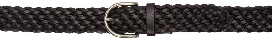Woven grained leather belt in black. Adjustable pin-buckle fastening. Antiqued silver-tone hardware. Approx. 1.25 width. Supplier color: Black Leather. Brand: Saint Laurent
