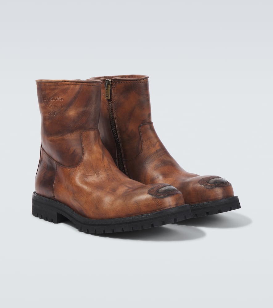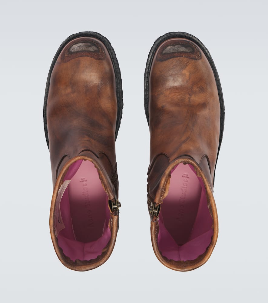 Upper: leather. Lining: leather. Sole: leather insole, rubber sole. Toe shape: almond open toe. Made in Italy. Includes: shoe box, dust bags. Designer color name: Brown. Closure: zipped side. Hardware color: bronze. Shop Acne Studios Ankle Boots for men and other designer shoes now.