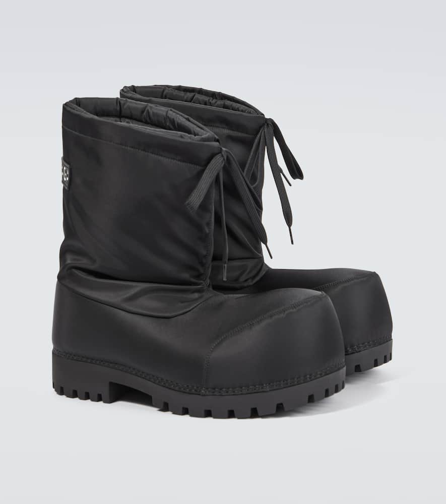 Upper: fabric. Lining: fabric, leather. Sole: rubber insole and sole. Toe shape: round toe. Made in Italy. Includes: shoe box. Designer color name: Black. Shop Balenciaga Lace Up Boots for men and other designer shoes now.