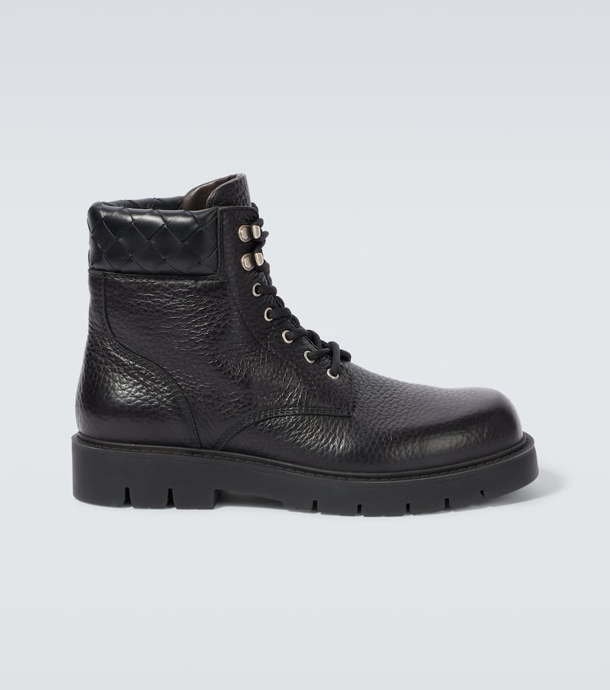 Upper: calf leather. Lining: leather. Sole: leather insole, rubber sole. Toe shape: round toe. Made in Italy. Includes: shoe box, dust bag. Designer color name: Black. Closure: lace-up. Shop Bottega Veneta Lace Up Boots for men and other designer shoes now.