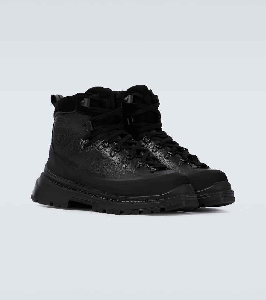 Lining: leather. Sole: leather insole, rubber sole. Toe shape: round toe. Upper: leather. Closure: lace-up. Designer color name: Black. Made in Italy. Shop Canada Goose Hiking Boots for men and other designer shoes now.