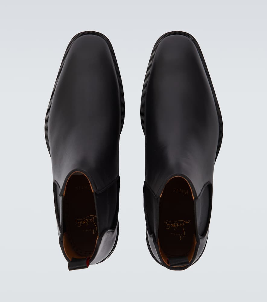 Upper: calf leather. Lining: leather. Sole: leather insole, rubber sole. Toe shape: round toe. Made in Italy. Includes: shoe box, dust bags. Designer color name: Black. Closure: elasticated sides. Shop Christian Louboutin Chelsea Boots for men and other designer shoes now.