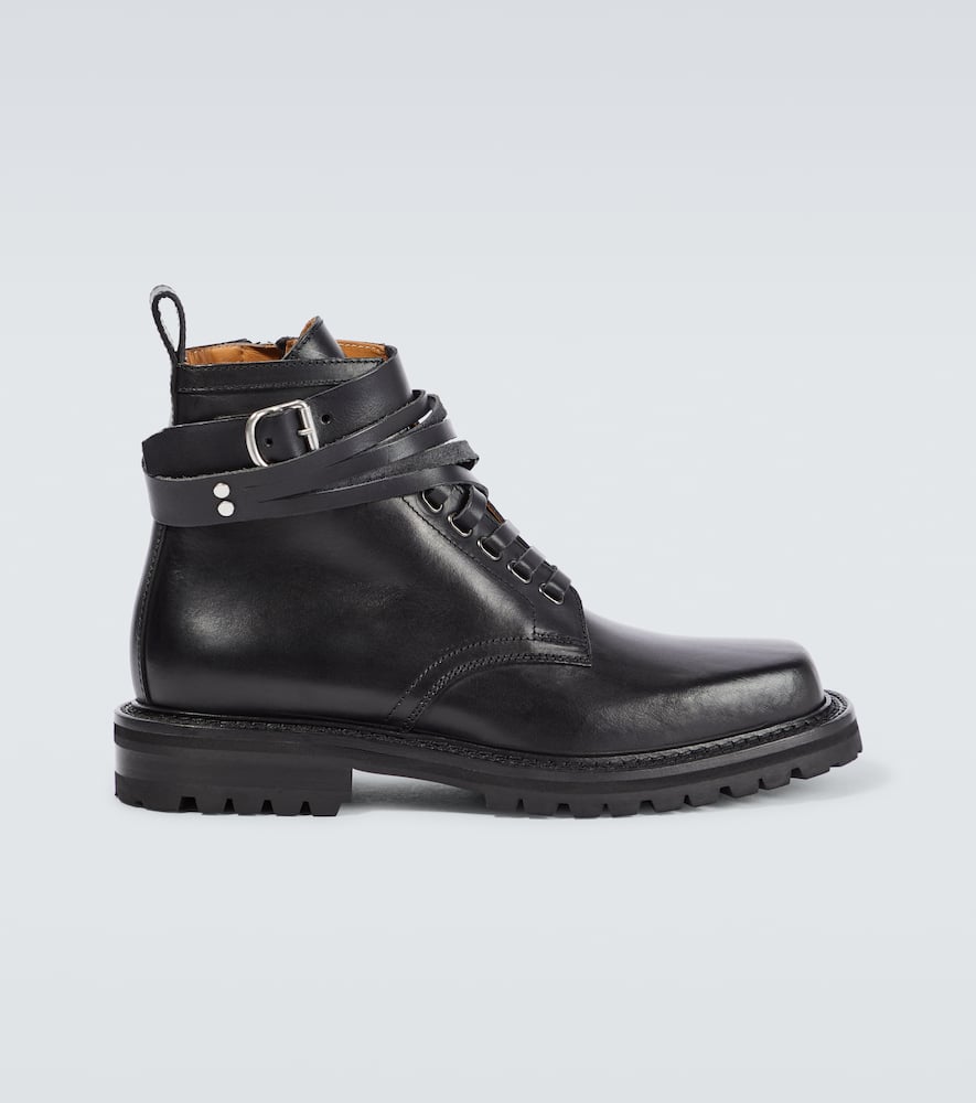 Upper: calf leather. Lining: leather. Sole: leather insole, rubber sole. Toe shape: round toe. Made in Italy. Includes: shoe box, dust bag. Designer color name: Black. Closure: zipped side. Shop Dries Van Noten Lace Up Boots for men and other designer shoes now.