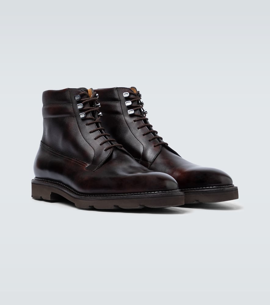 Upper: leather. Lining: leather. Sole: leather insole, rubber sole. Toe shape: almond toe. Made in the UK. Includes: shoe box. Designer color name: Dark Brown. Closure: lace-up. Hardware color: silver. Shop John Lobb Lace Up Boots for men and other designer shoes now.