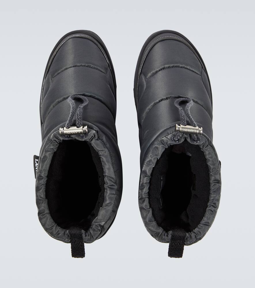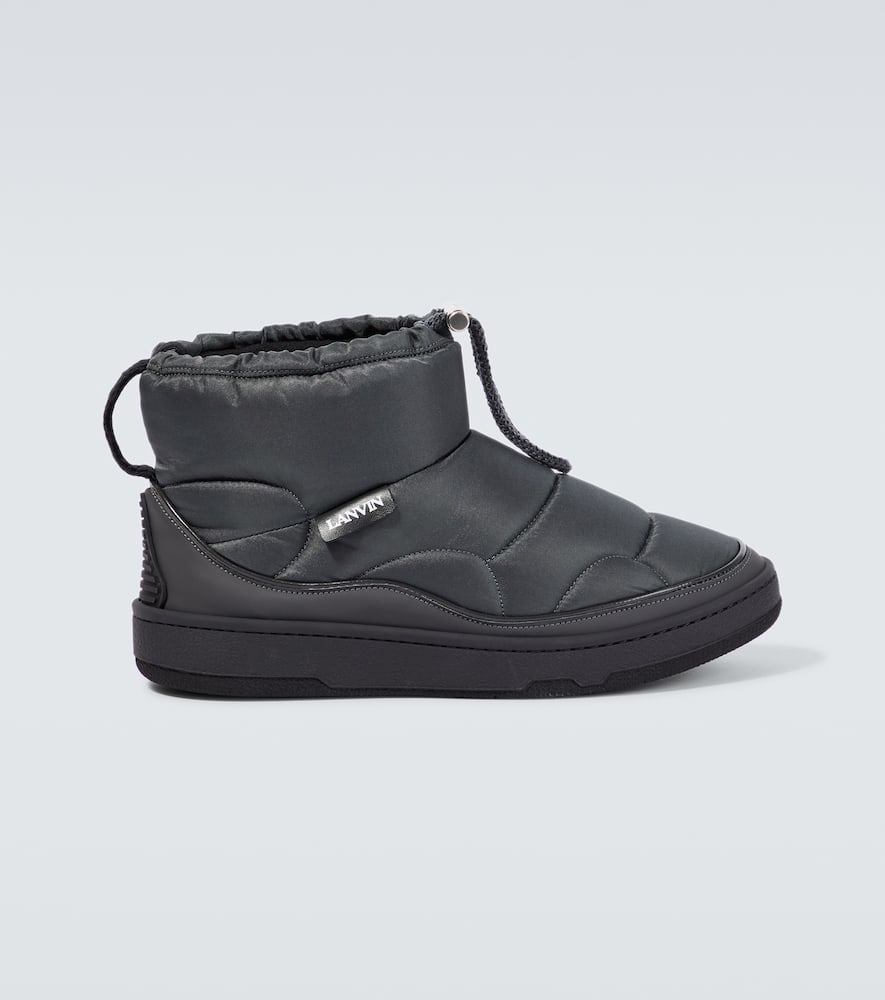 Upper: fabric. Lining: fabric. Sole: fabric insole, rubber sole. Toe shape: round toe. Made in Portugal. Includes: dust bag, shoe box. Designer color name: Loden. Closure: drawstring. Shop Lanvin Hiking Boots for men and other designer shoes now.