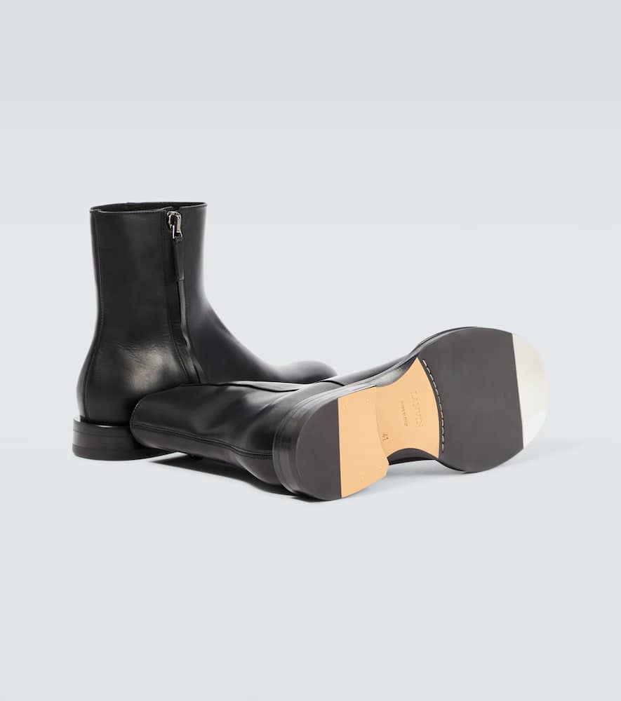 Upper: leather. Lining: leather. Sole: leather insole, leather and rubber sole. Toe shape: round toe. Made in Italy. Includes: shoe box. Designer color name: Black. Closure: zipped side. Comes with dust bags. Shop Lanvin Chelsea Boots for men and other designer shoes now.