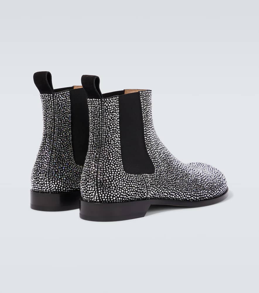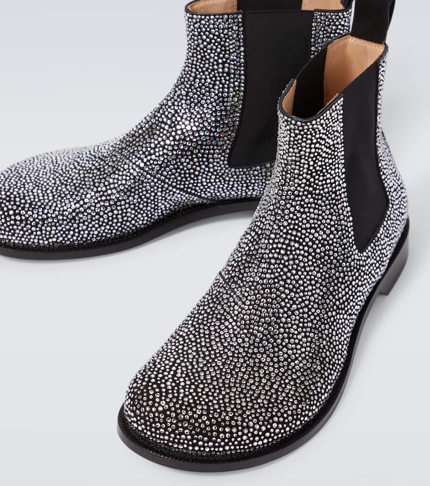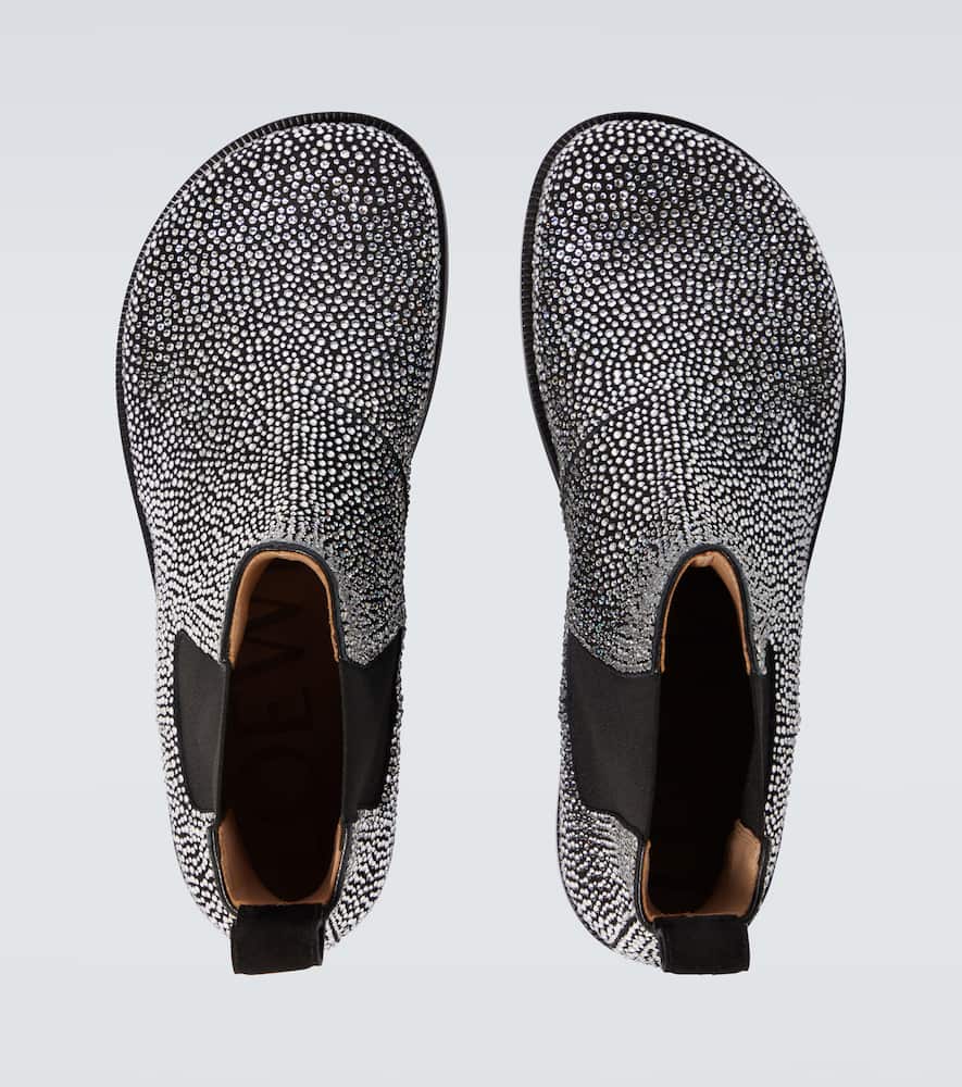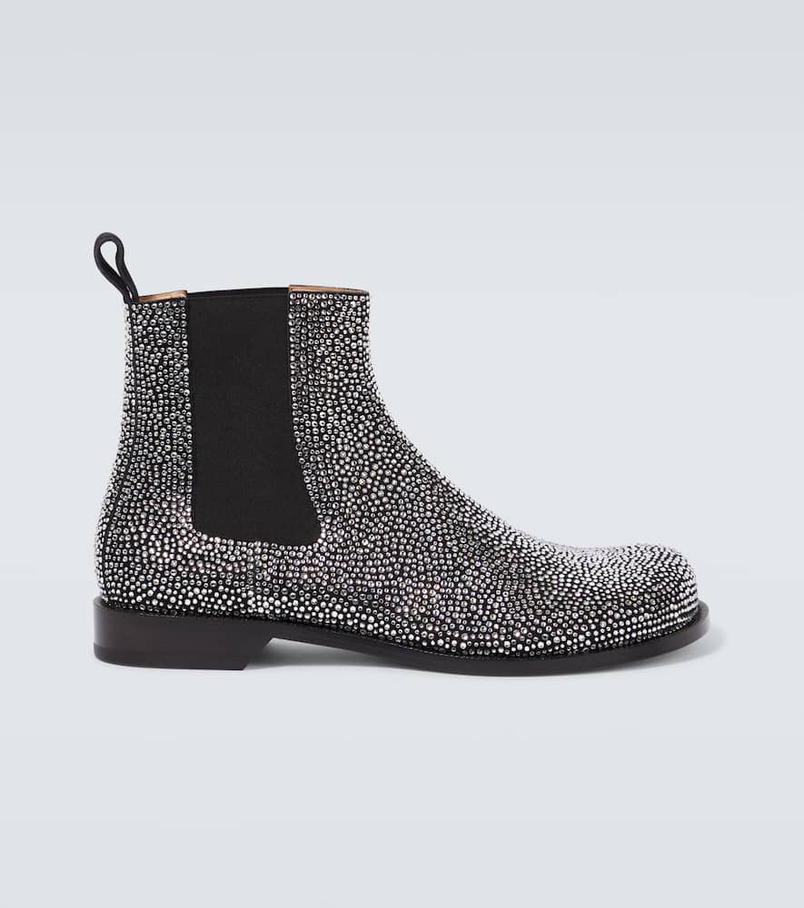 Upper: calf leather. Lining: leather. Sole: leather insole and sole. Toe shape: round toe. Made in Italy. Includes: shoe box, dust bags. Designer color name: Black. Closure: elasticated sides. Shop Loewe Chelsea Boots for men and other designer shoes now.