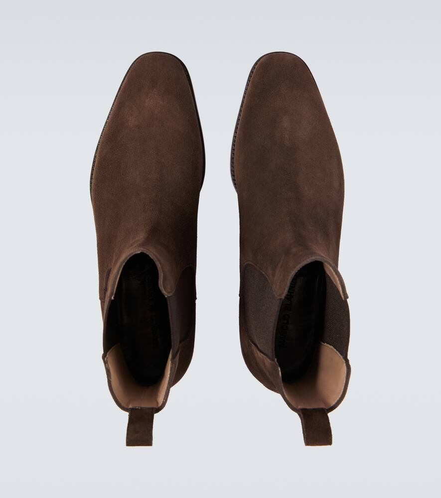 Upper: leather. Lining: leather. Sole: leather insole and sole. Toe shape: pointed toe. Made in Italy. Designer color name: Dbrw. Trim: fabric. Comes with dust bag. Comes with a box. Shop Manolo Blahnik Chelsea Boots for men and other designer shoes now.
