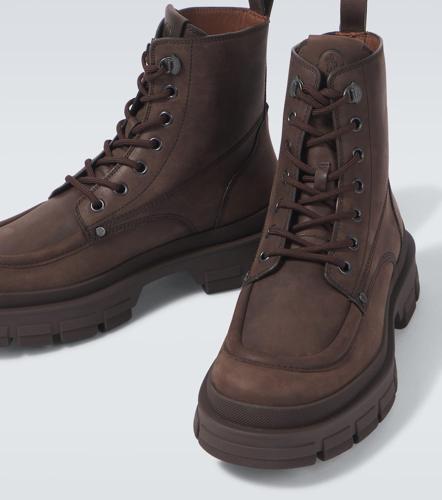 Upper: leather. Lining: leather. Sole: leather insole, rubber sole. Toe shape: round toe. Made in Italy. Includes: shoe box, dust bag. Designer color name: Coffee Bean. Shop Moncler Lace Up Boots for men and other designer shoes now.