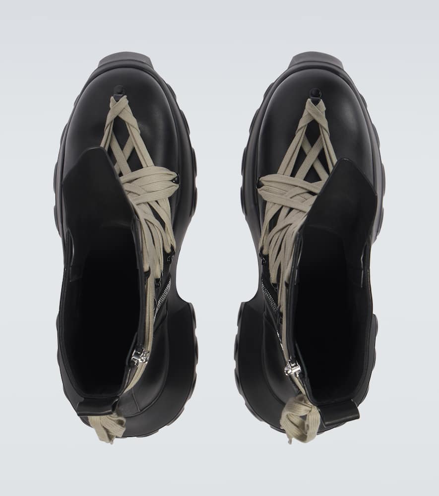 Upper: leather. Lining: leather. Sole: leather insole, rubber sole. Toe shape: round toe. Made in Italy. Includes: shoe box, dust bag. Designer color name: Black/Black. Trim: fabric. Closure: zipped side. Hardware color: silver. Shop Rick Owens Lace Up Boots for men and other designer shoes now.
