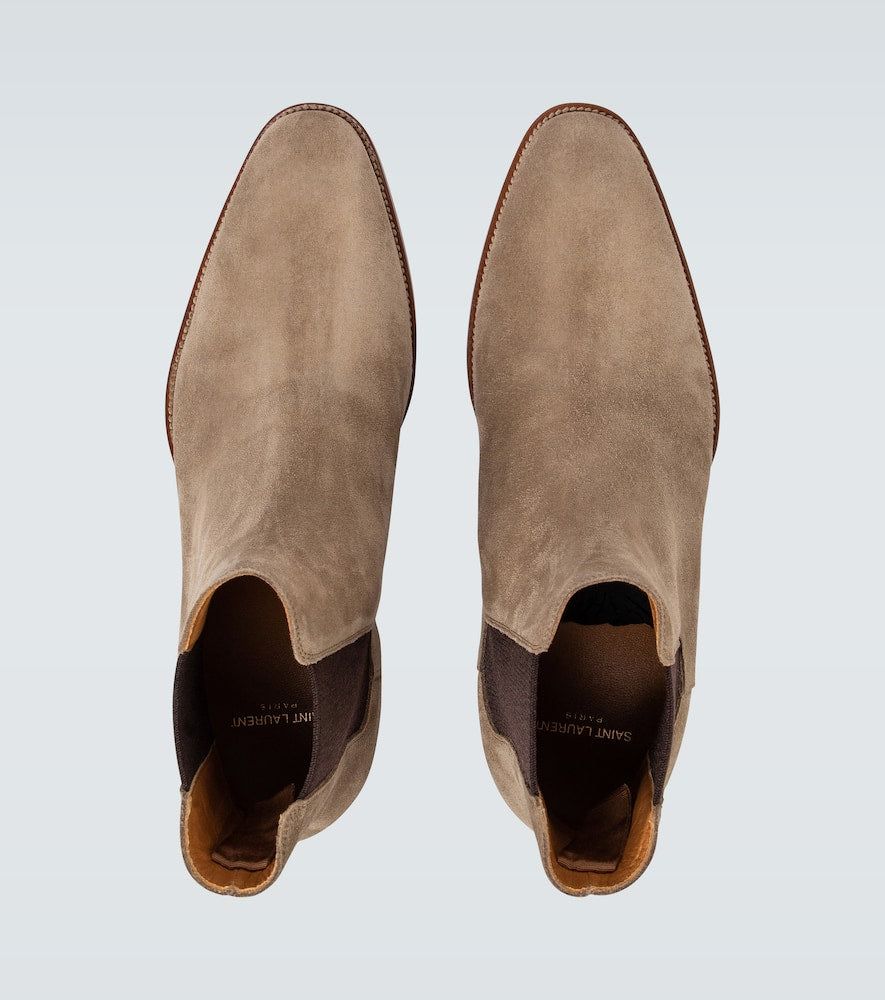 Lining: leather, fabric. Upper: goat leather. Sole: leather insole and sole. Toe shape: almond toe. Made in Italy. Designer color name: New Sigaro. Trim: fabric. Closure: elasticated sides. Shop Saint Laurent Chelsea Boots for men and other designer shoes now.