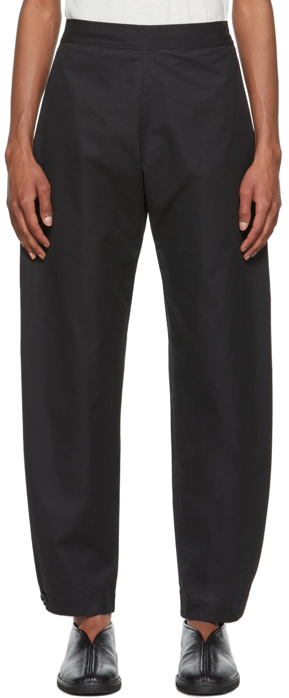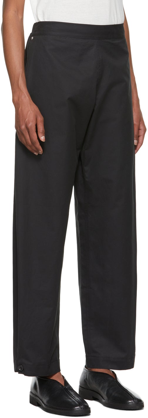 Wide-leg cotton canvas trousers in black. Mid-rise. Two-pocket styling. Partially elasticized waistband. Adjustable buttoned tab at cuffs. Silver-tone hardware. Supplier color: Black 100% cotton. Brand: 3MAN