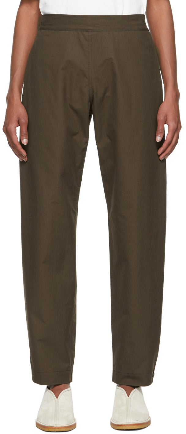 Wide-leg cotton canvas trousers in brown. Mid-rise. Two-pocket styling. Partially elasticized waistband. Adjustable buttoned tab at cuffs. Silver-tone hardware. Supplier color: Brown 100% cotton. Brand: 3MAN