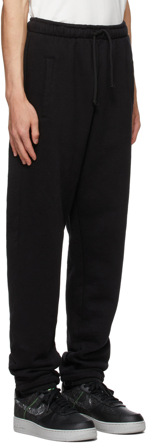Relaxed-fit cotton fleece lounge pants in black. Mid-rise. Three-pocket styling. Drawstring at elasticized waistband. Logo embroidered in red at front. Inset rib knit cuffs. Supplier color: Black 100% cotton. Brand: 424