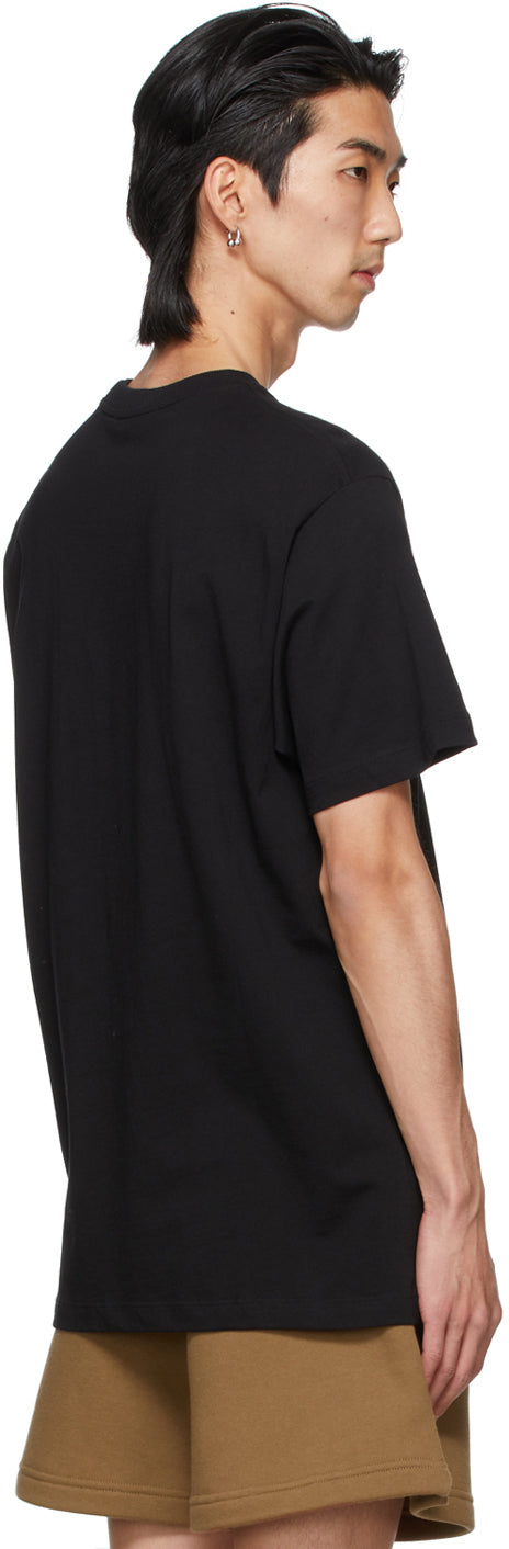 Short sleeve cotton jersey T-shirt in black. Rib knit crewneck collar. Terrycloth logo appliqué in off-white, black, and grey at chest. Supplier color: Black 100% cotton. Brand: 424