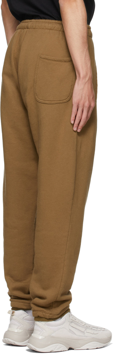 Relaxed-fit cotton fleece lounge pants in brown. Mid-rise. Three-pocket styling. Drawstring at elasticized waistband. Logo embroidered in red at front. Inset rib knit cuffs. Supplier color: Beige 100% cotton. Brand: 424