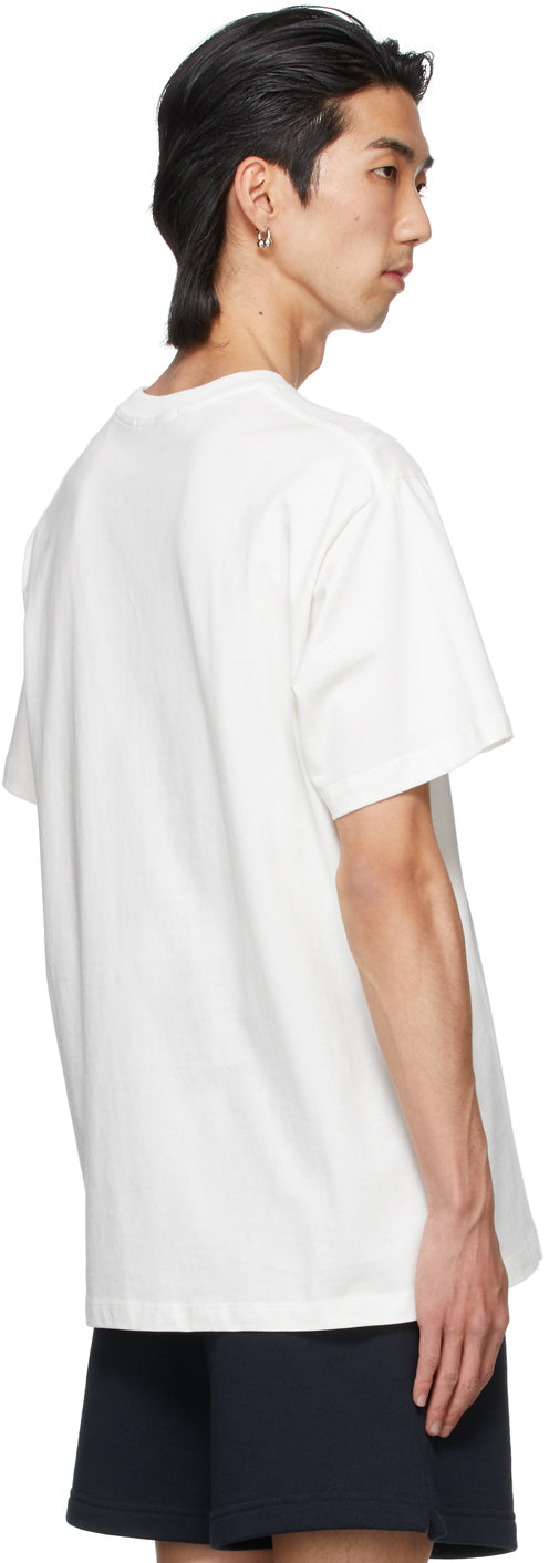 Short sleeve cotton jersey T-shirt in white. Rib knit crewneck collar. Terrycloth logo appliqué in off-white, black, and grey at chest. Supplier color: White 100% cotton. Brand: 424