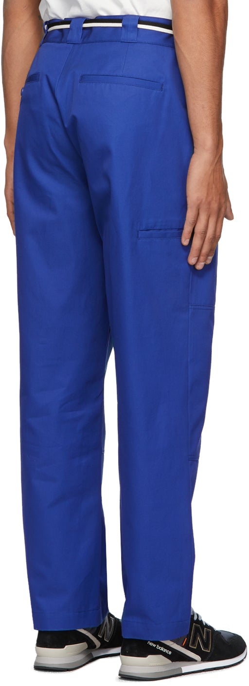Wide-leg panelled cotton twill trousers in navy. Mid-rise. Five-pocket styling. Belt loops and mismatching drawstrings in white and black at waistband. Welt pocket at back. Zip-fly. Tonal and silver-tone hardware. Supplier color: Navy 100% cotton. Brand: 4SDESIGNS