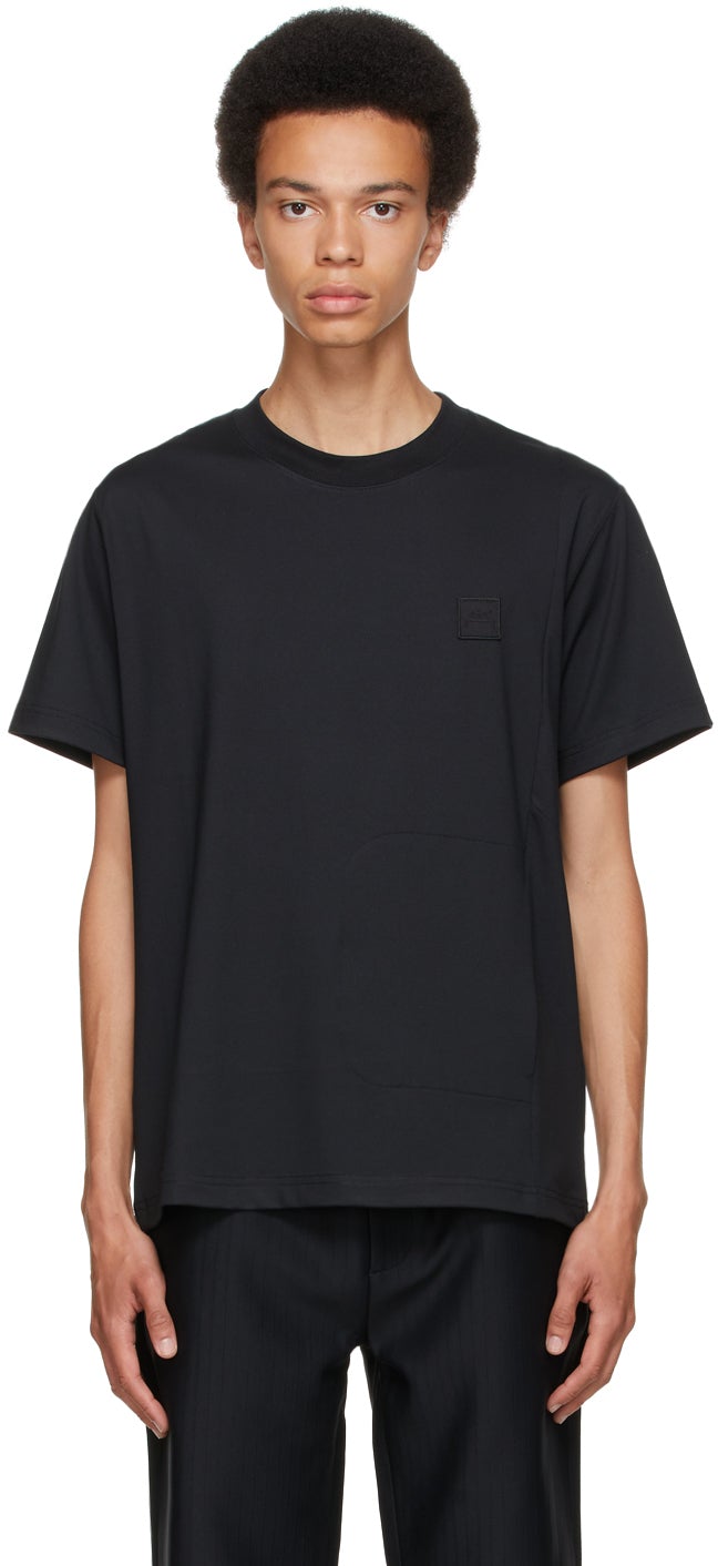 Short sleeve stretch technical jersey T-shirt in black. Rib knit crewneck collar. Tonal textile logo patch at chest. Welt pocket at waist. Logo embroidered at back hem. Supplier color: Black 86% polyester, 14% elastane. Brand: A-COLD-WALL*