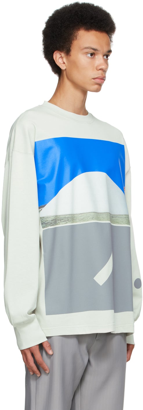 Long sleeve organic cotton jersey T-shirt in green. Rib knit crewneck collar and cuffs. Graphic bonded in multicolor at front. Logo and text embroidered in grey at back. Supplier color: Chalk 100% organic cotton. Brand: A-COLD-WALL*