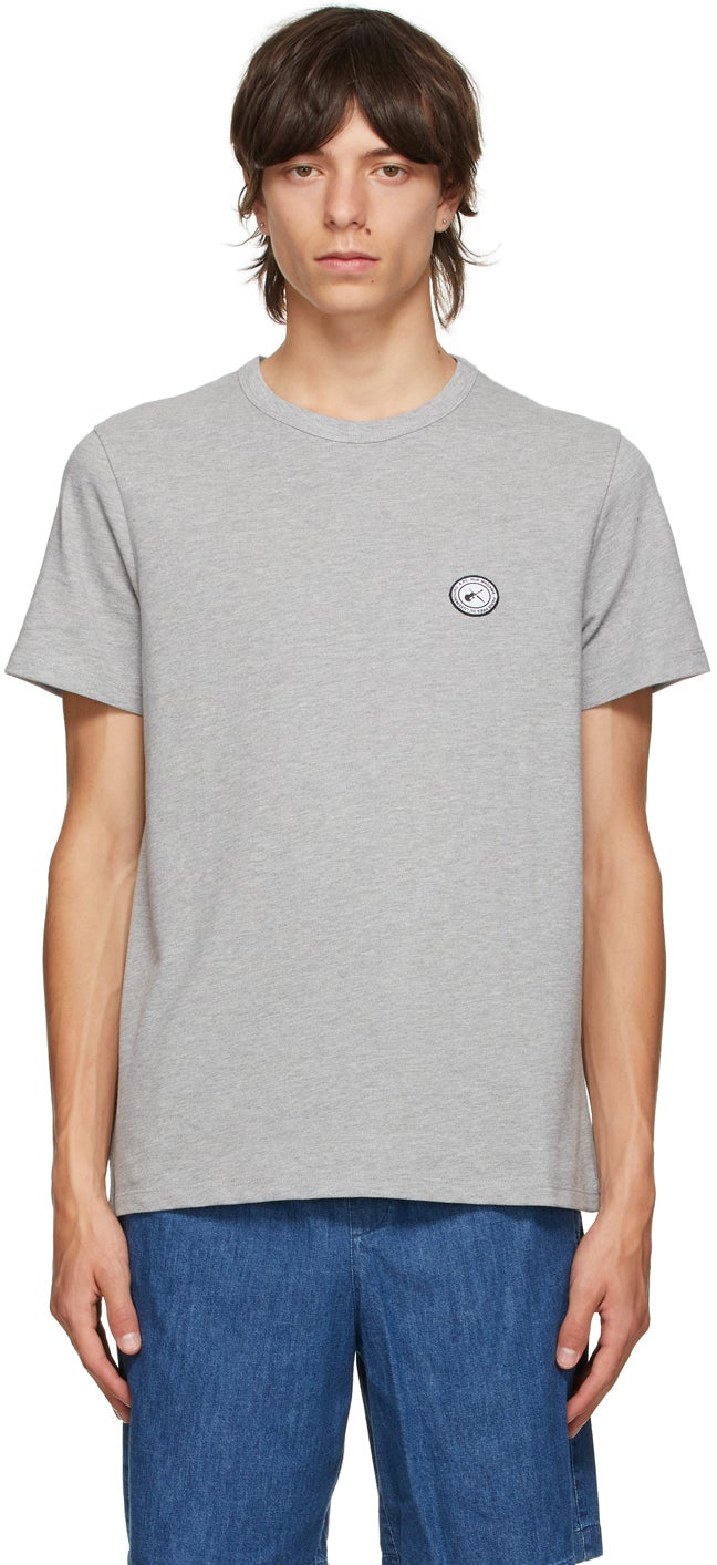Short sleeve cotton piqué T-shirt in grey. Logo appliqué in black and white at chest. Supplier color: Heather grey 100% cotton. Brand: A.P.C.