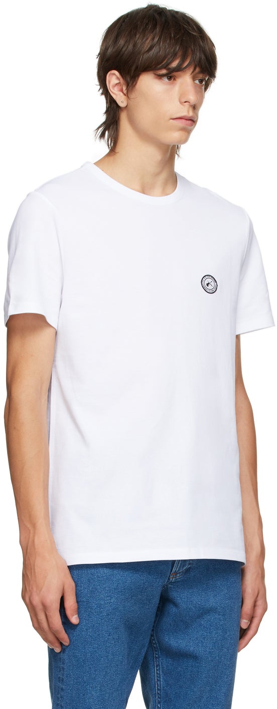Short sleeve cotton piqué T-shirt in white. Logo appliqué in black and white at chest. Supplier color: White 100% cotton. Brand: A.P.C.