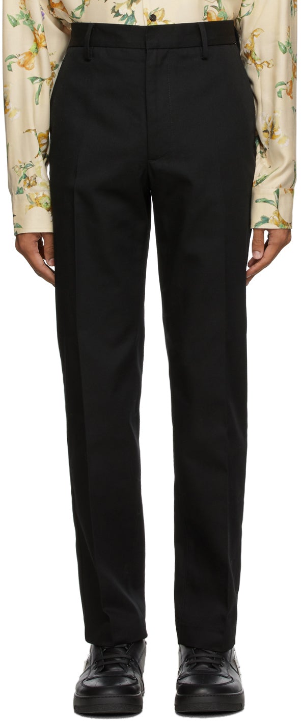 Slim-fit cotton-blend twill trousers in black. Mid-rise. Four-pocket styling. Belt loops at waistband. Central pleats at front. Zip-fly. Gunmetal-tone hardware. Supplier color: Black Body: 65% cotton, 35% polyester. Lining: 65% polyester, 35% cotton. Brand: Acne Studios