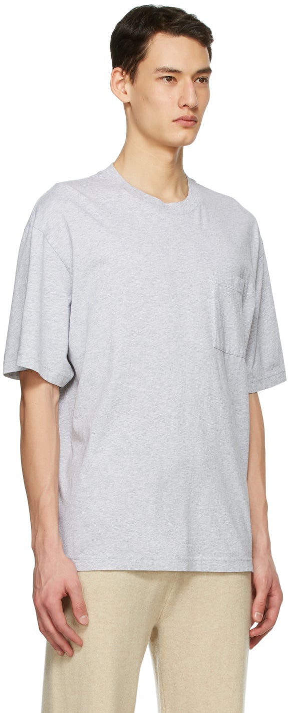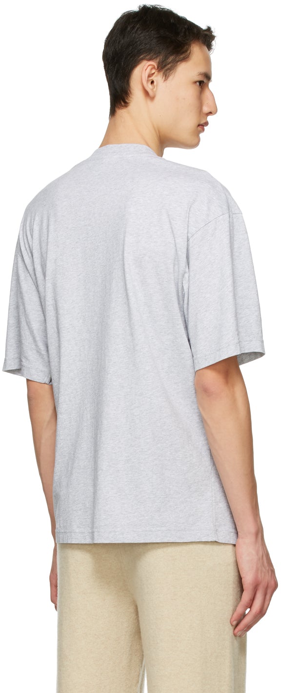 Short sleeve cotton jersey T-shirt in grey mélange. Rib knit crewneck collar. Patch pocket and textile logo flag in pink and black at chest. Supplier color: Grey mélange 100% cotton. Brand: Acne Studios