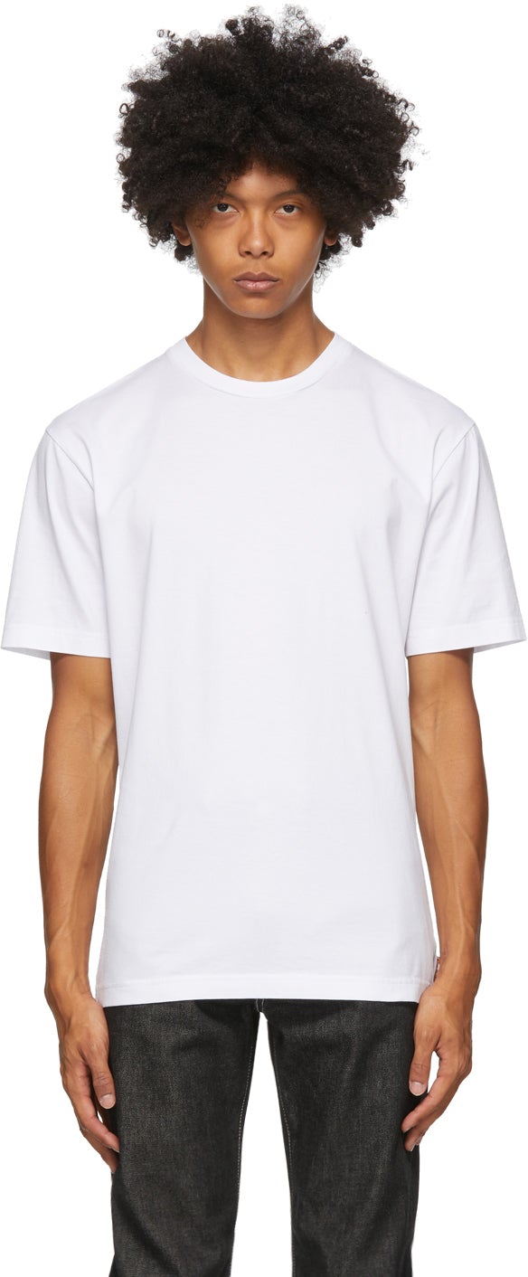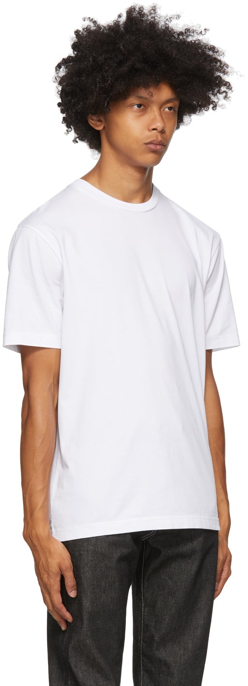 Short sleeve cotton jersey T-shirt in white. Rib knit crewneck collar. Logo flag in pink at side-seam. Supplier color: Optic white 100% cotton. Brand: Acne Studios