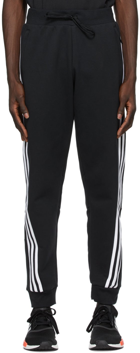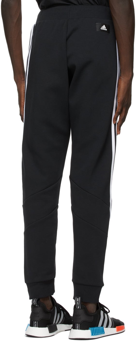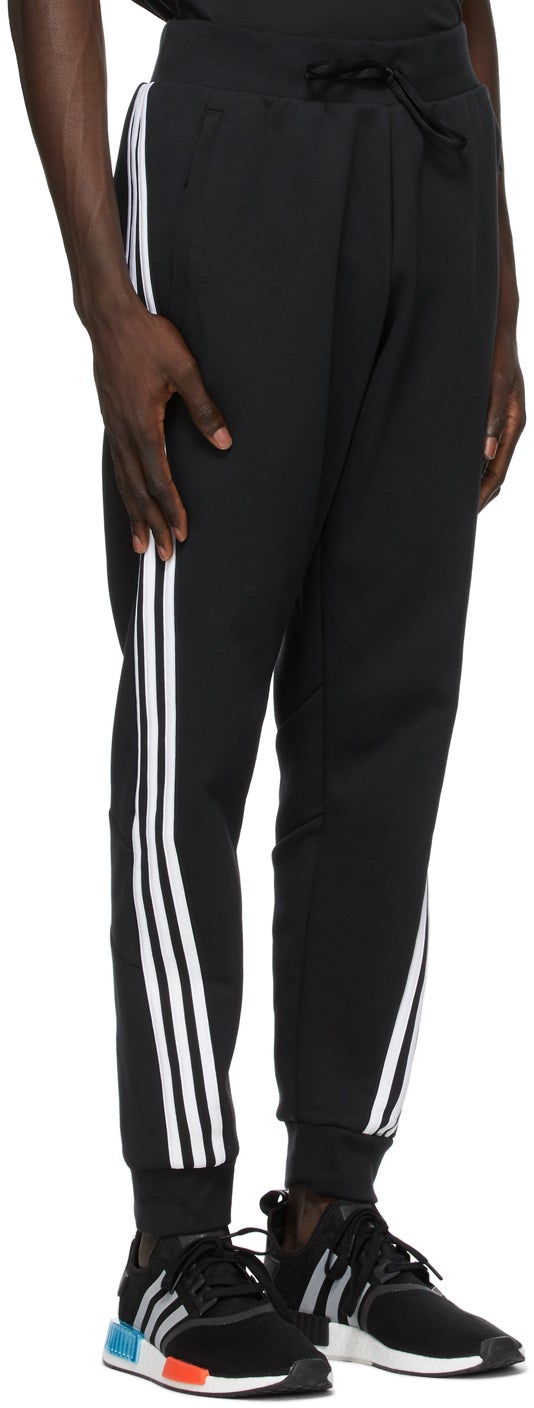 Tapered recycled bonded jersey lounge pants in black. Mid-rise. Two-pocket styling. Drawstring at elasticized waistband. Signature stripes in white at outseams. Rib knit cuffs. Logo bonded in white and black at back waistband. Supplier color: Black 100% recycled polyester. Brand: adidas Originals